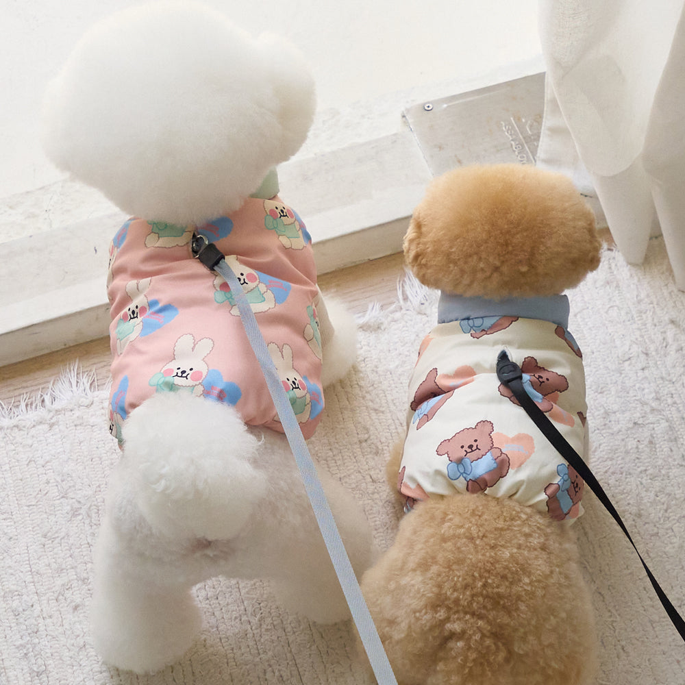 もふもふ 生地が良く、ふわふわで暖かそうで良いです!ハーネスが洋服の下に着用できるのがめちゃいいです。ただ、約6キロのわんちゃんで、Lはちょっと小さかったかなと思いました。少し、ファスナーの着脱が難しいとも感じました。
